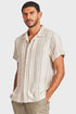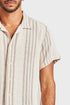 A perfect relaxed summer shirt constructed using a premium breezy textured fabrication, Features a revere collar as an ode to another era, An easy going style in a timeless stripe design ideal for the summer months.
